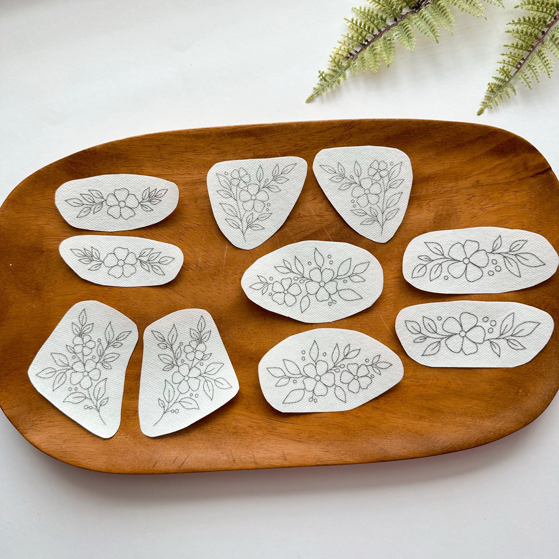 This pack includes 10 stick and stitch patterns ( 5 pairs of mirrored floral motifs)
