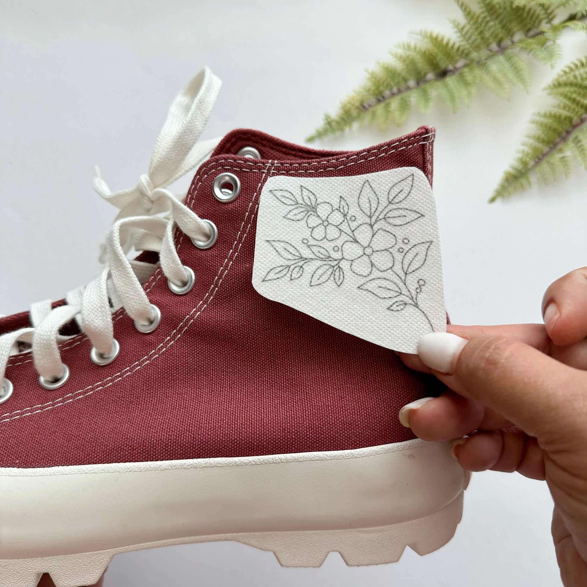 Adding dainty little flowers to your Chucks is easy with these pre-sized, pre-printed, and precut, dissolvable floral embroidery patterns, designed specifically for these iconic canvas shoes.