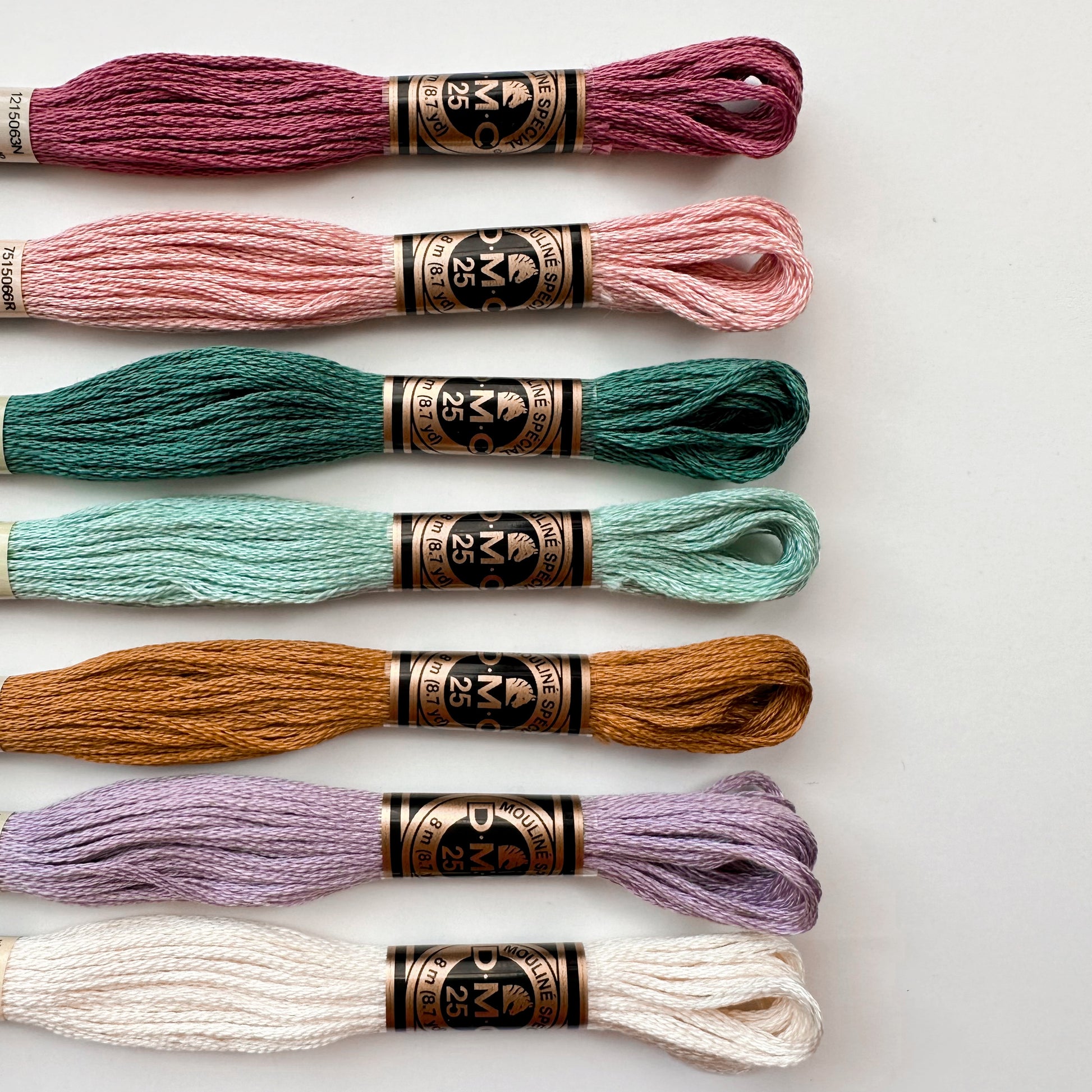 Includes seven (7) 8 meter skeins of DMC 6 ply cotton embroidery floss.