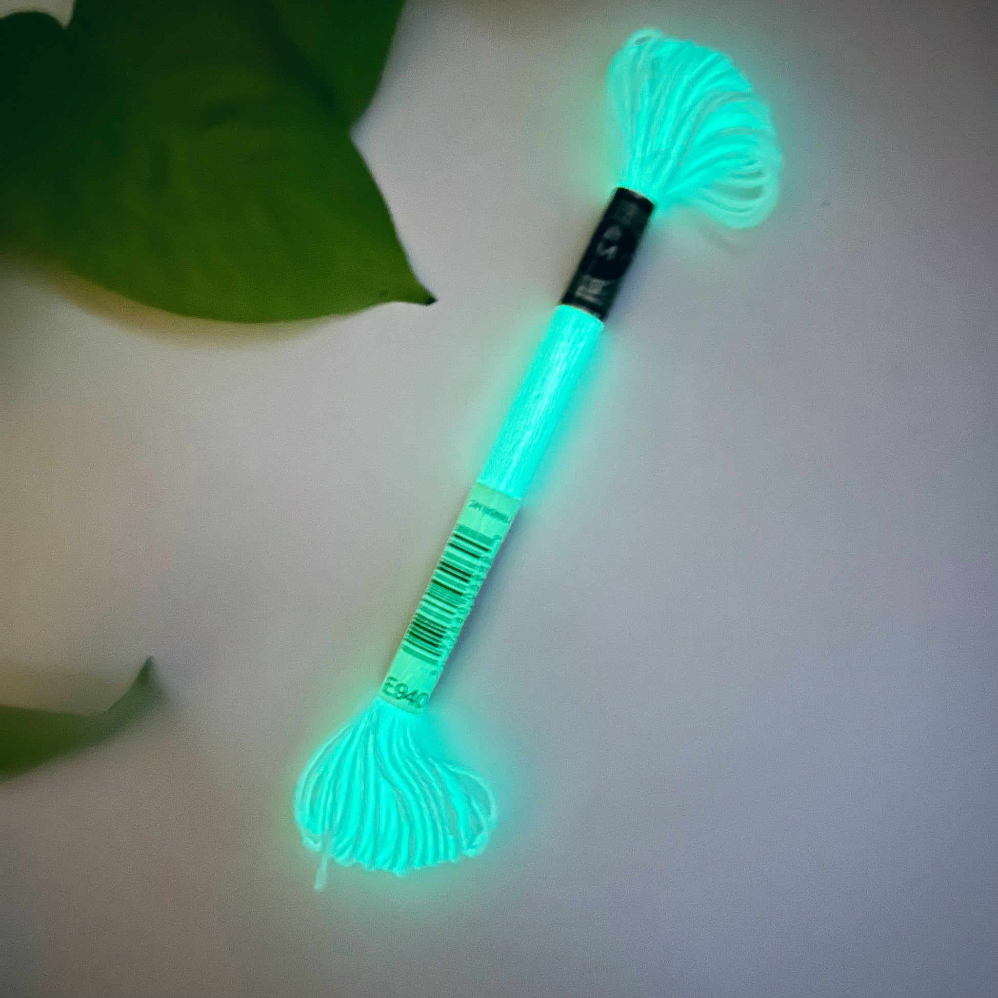 - 2 specialty fibers: glow-in-the-dark, gold metalic